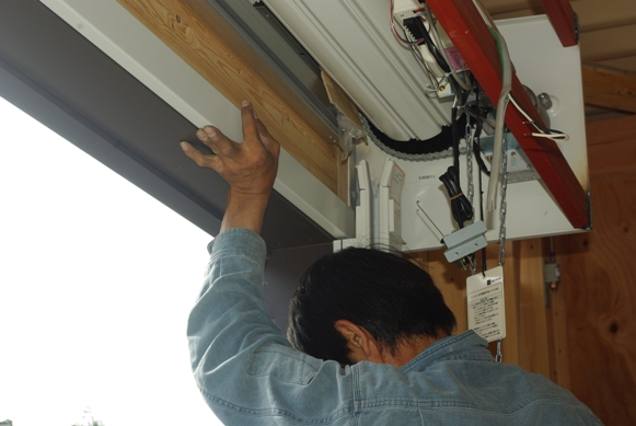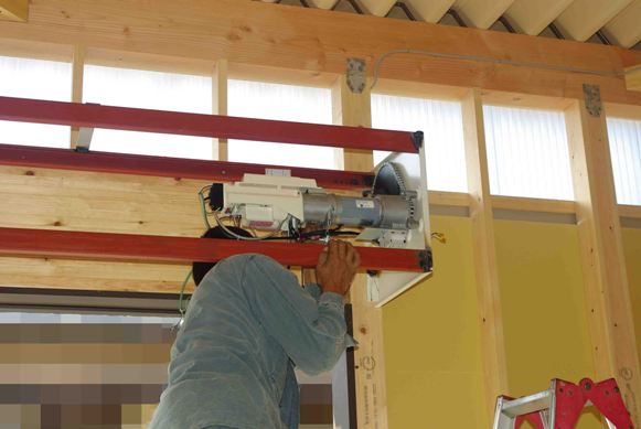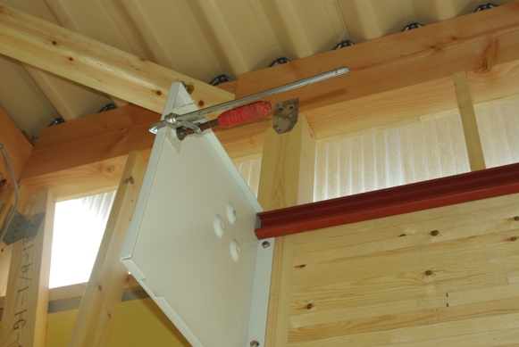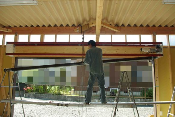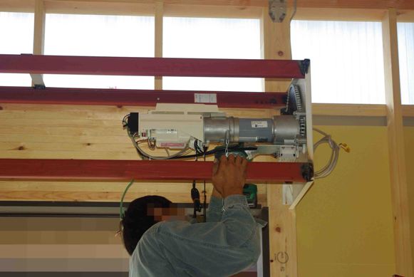 再度ガイドローラーとエマーゼンシスイッチを取り付けたまぐさを向こう側に90度転がしてセットしました。