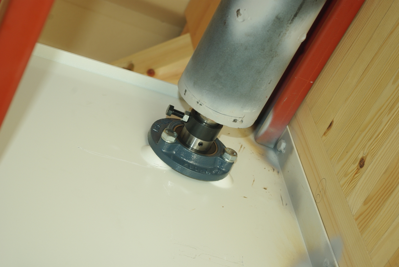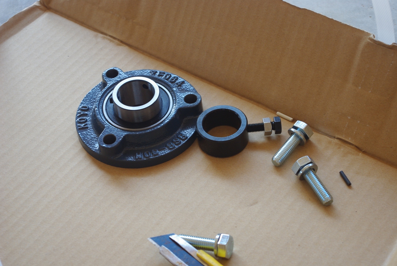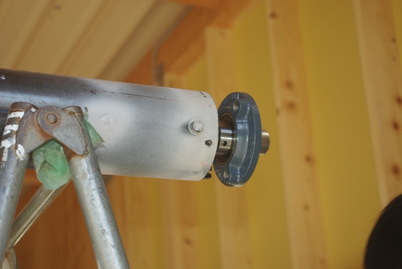 しっかりと固定された軸受けと、セットされたシャフトです。