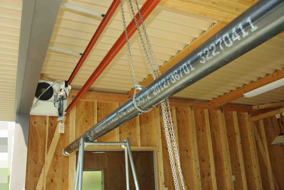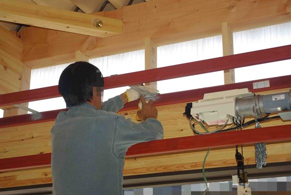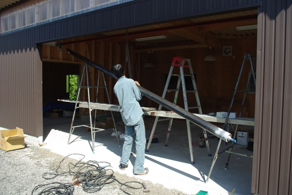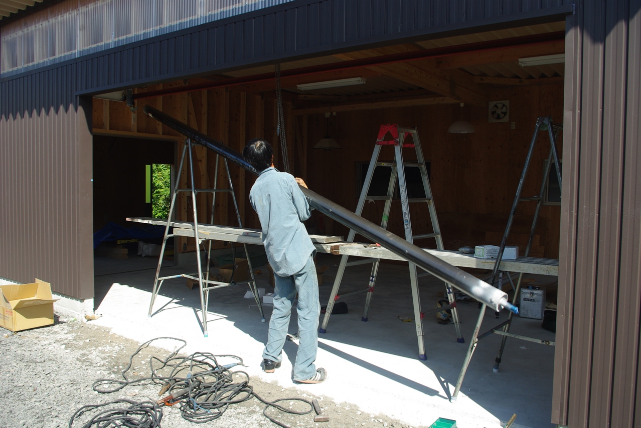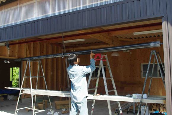 この重いシャフトの設置を一人で行うには、チェーンブロックが必要ですね。