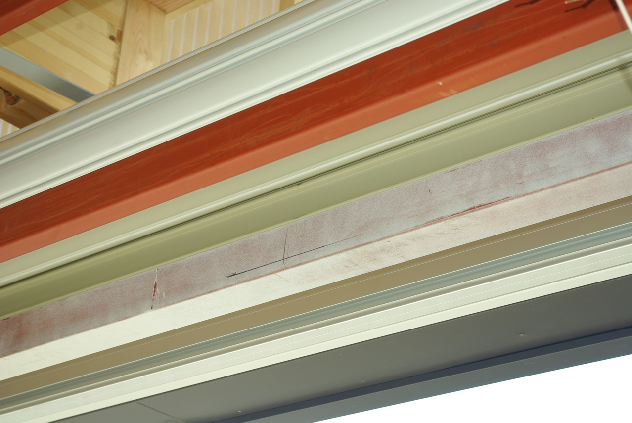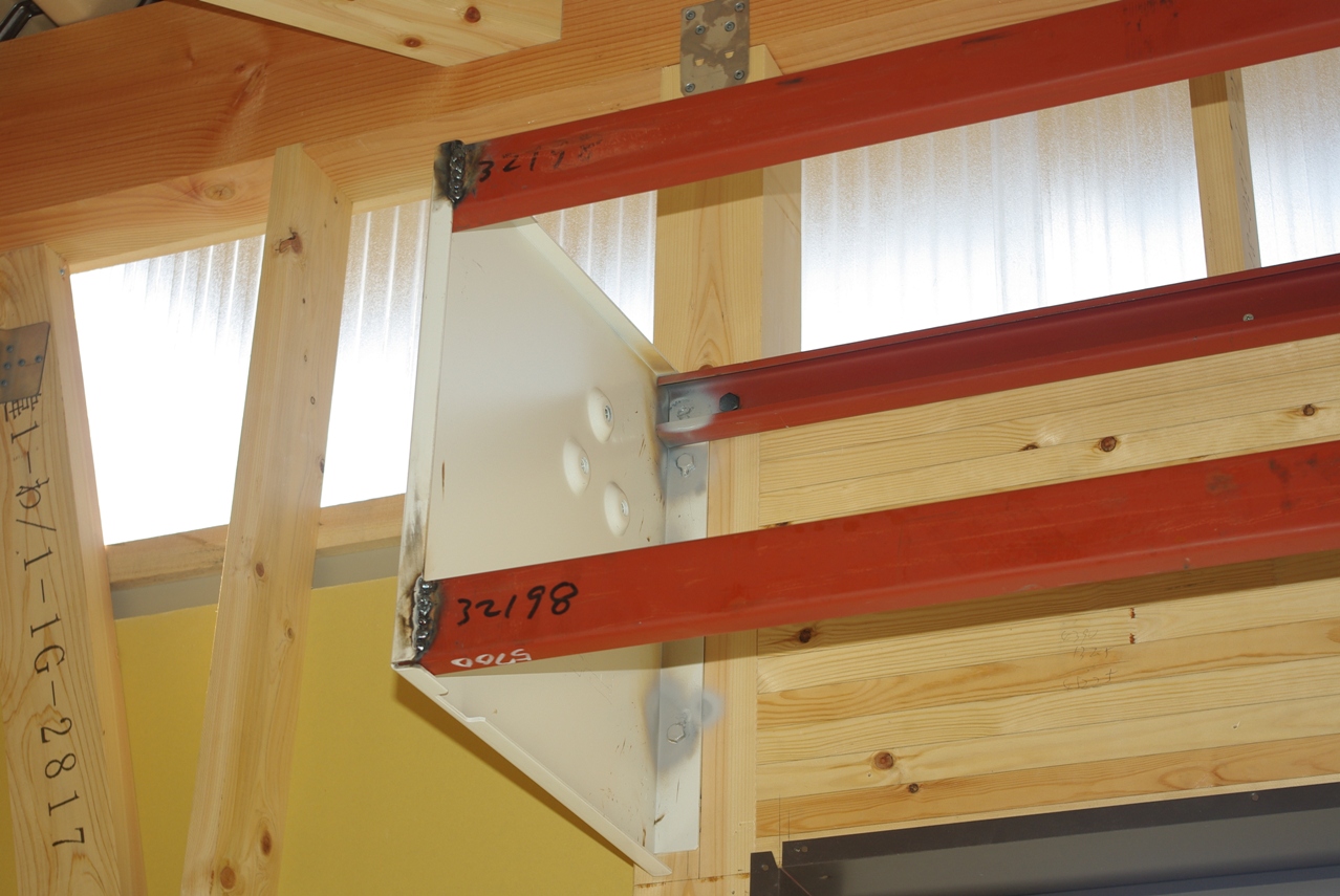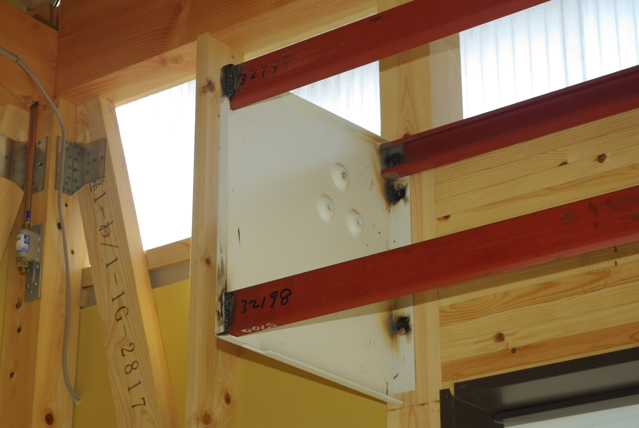そして短い鉄骨の桁を下本のまぐさの間に取り付けます。