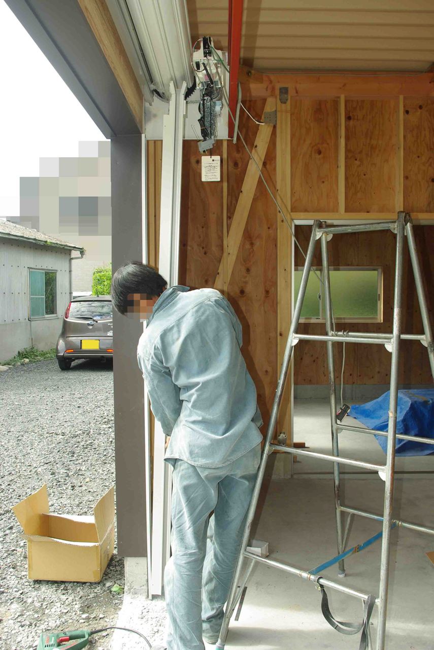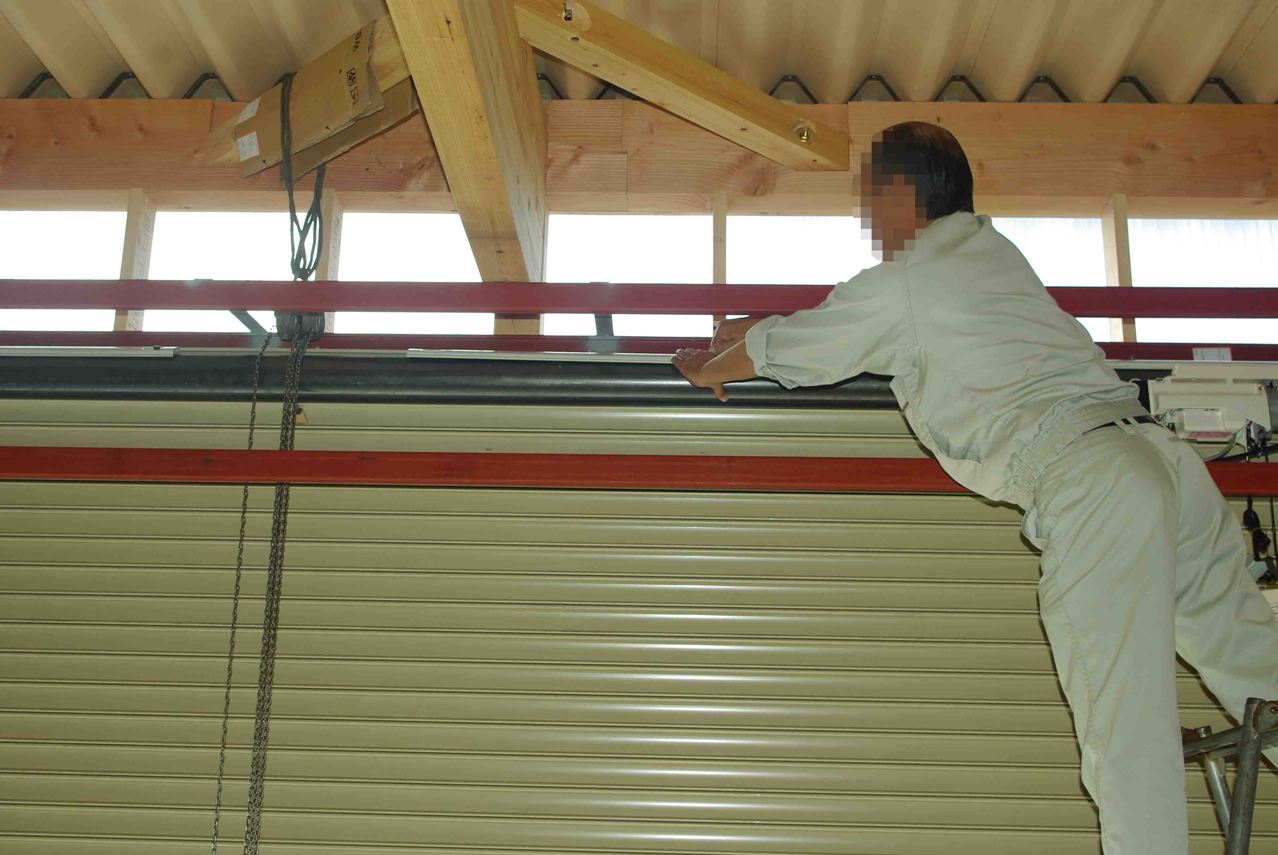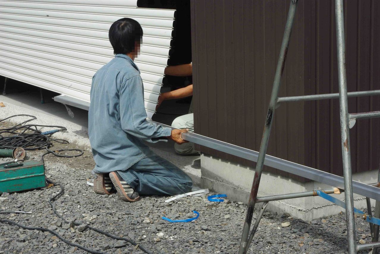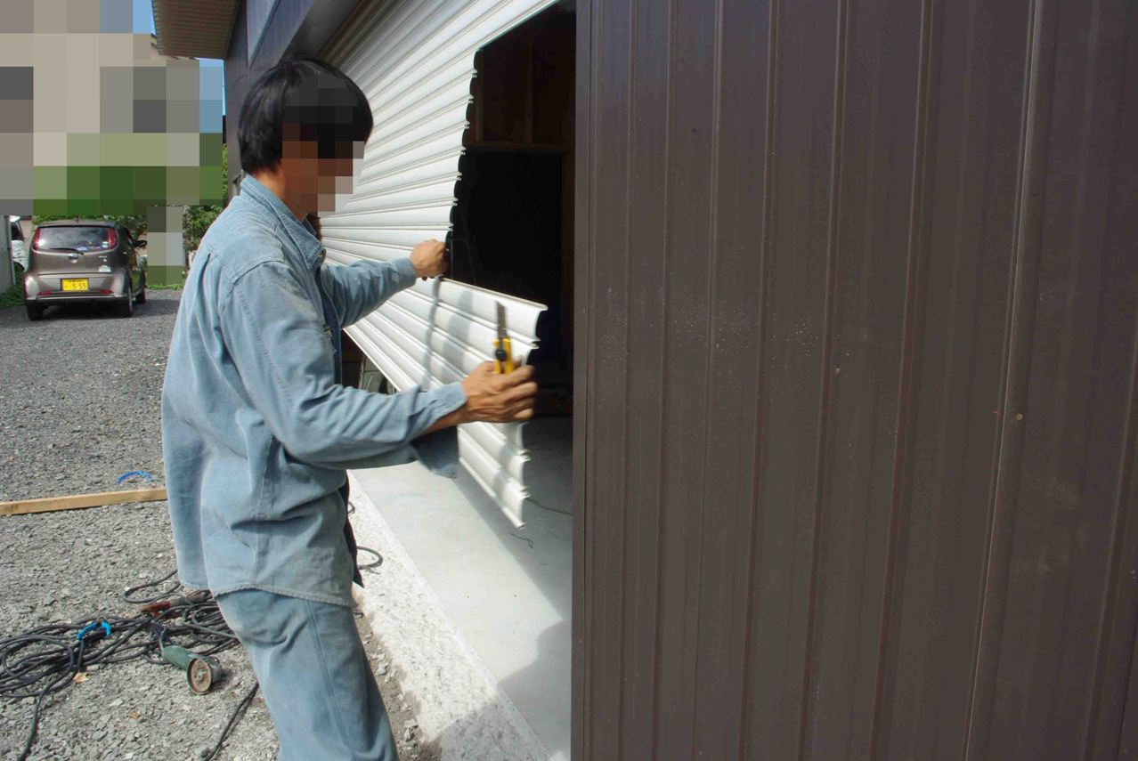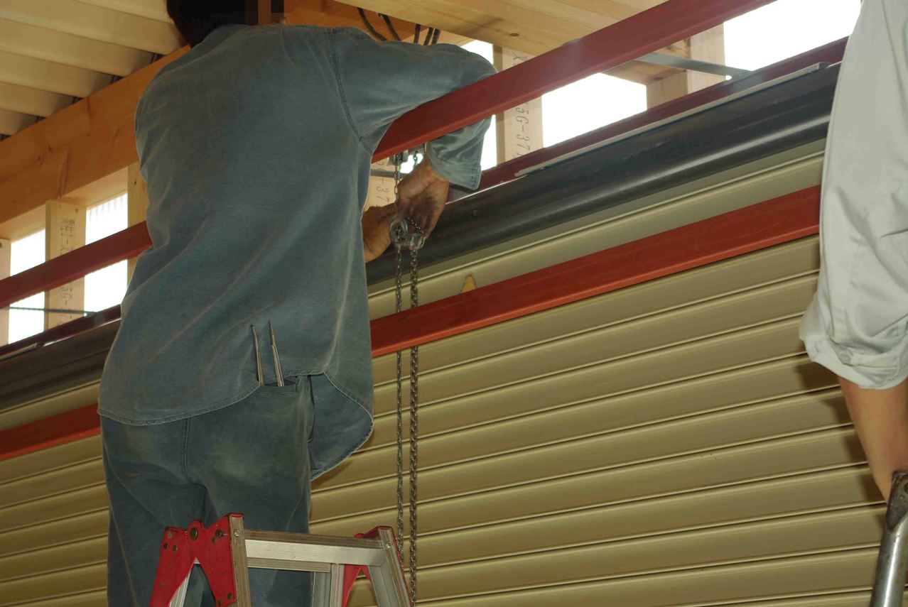 シャッター屋さんは、作業に取り掛かるための足場を組んでいます。