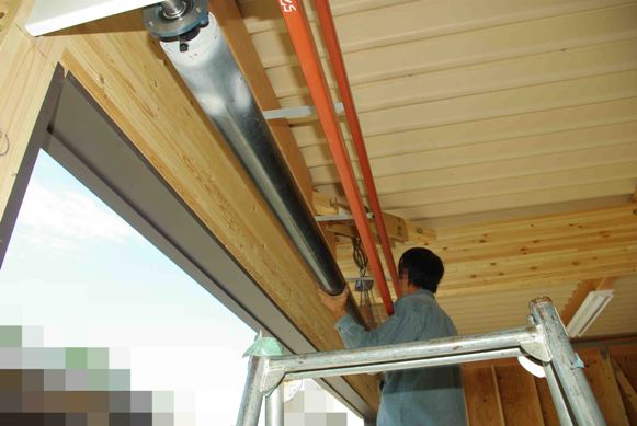 我が家のように建物の側面にスペースがある場合は、このようにカーテンを分割して取り付けられるので、比較的楽なのだそうです。