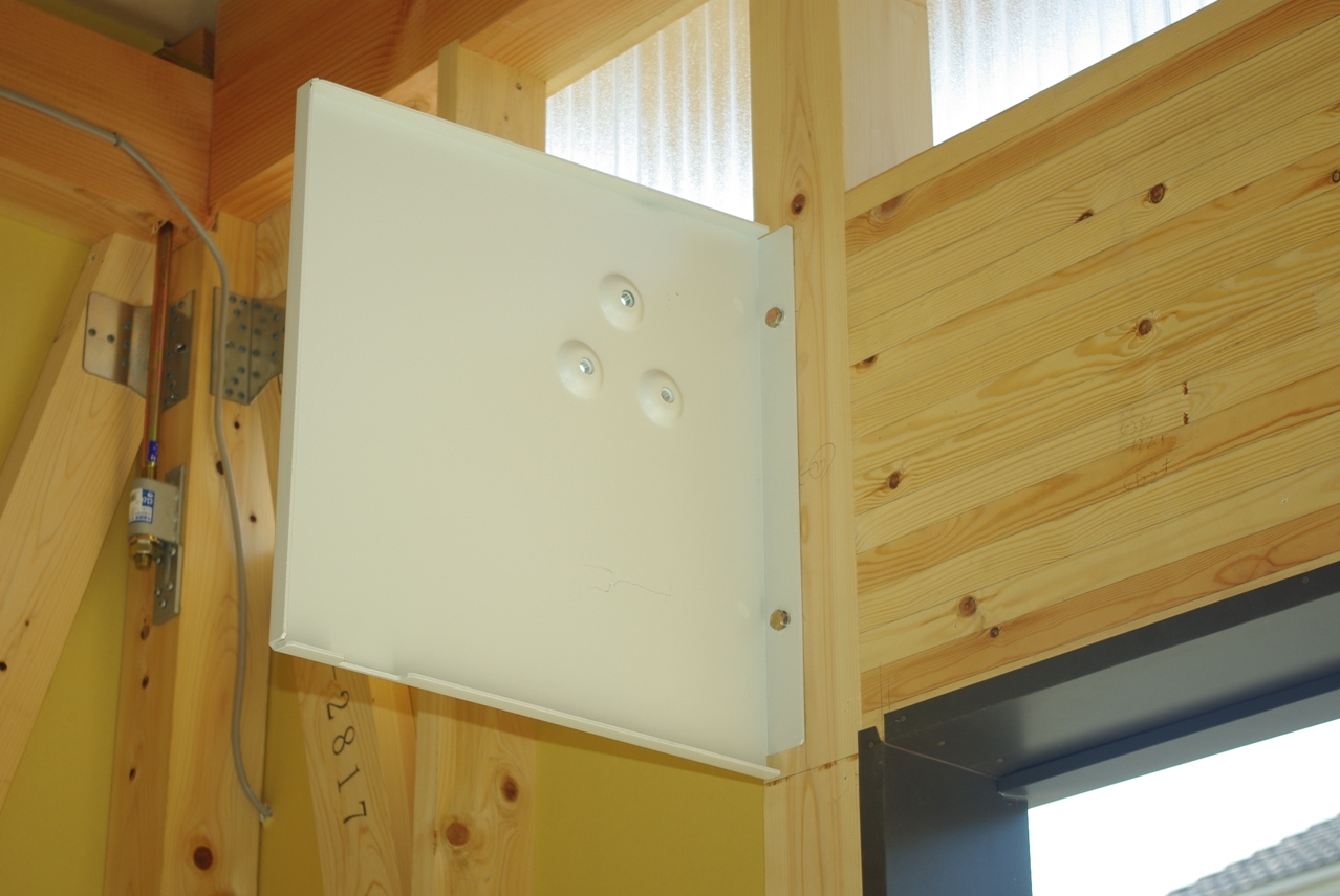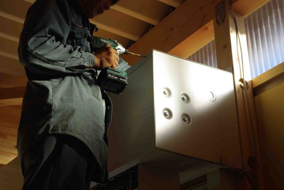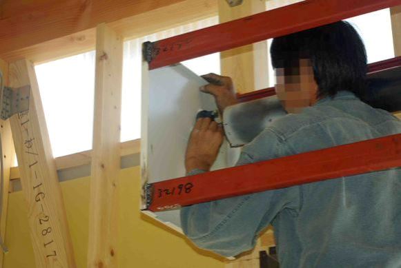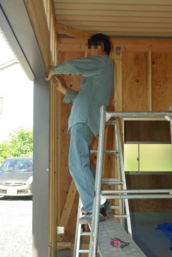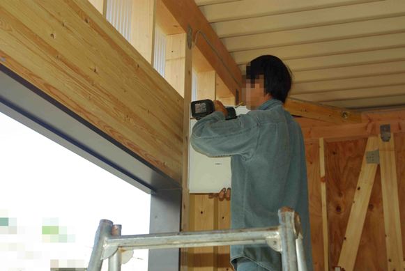 フィットの確認後、長押(なげし)に化粧パネルを木ねじで固定していきます。