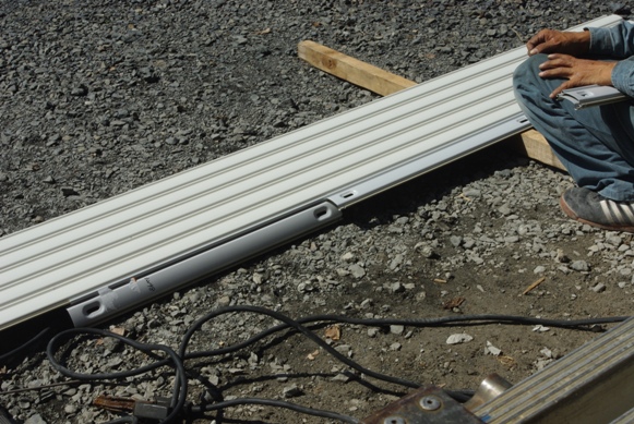 ブラケットの設置が完了したら、次にガイドレールを少し加工します。