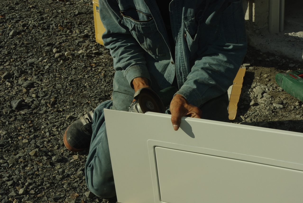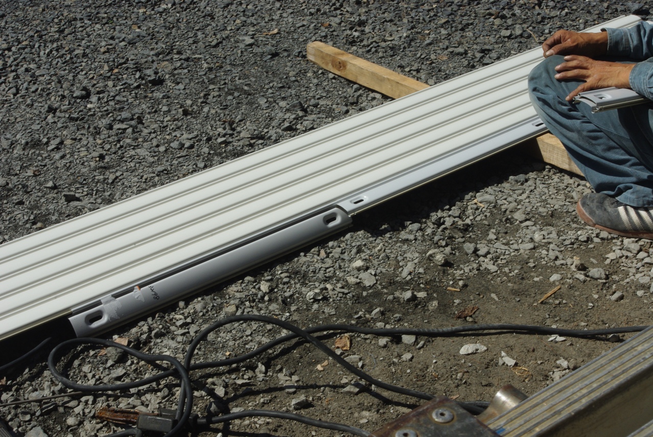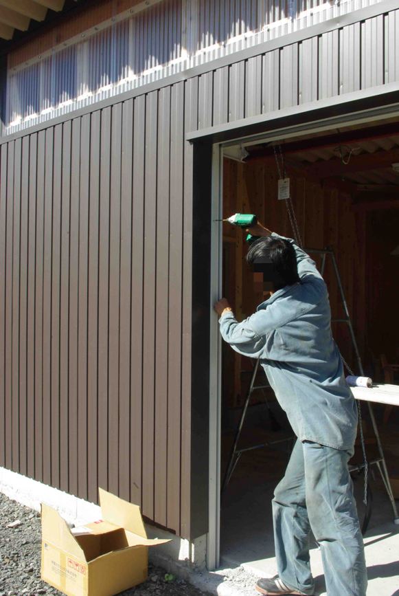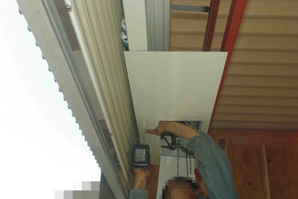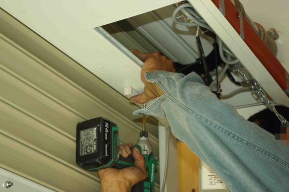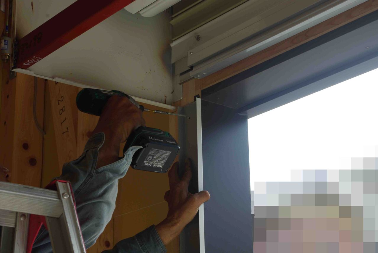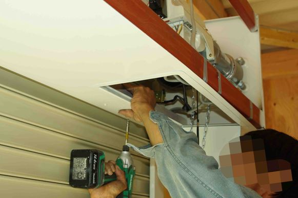 ところがどうしても先に取り付けたガイドレール上端部が邪魔で、やむを得ずガイドレール上側の一部タッピングビスを外してなんとか規定の位置に納めることが出来ました。