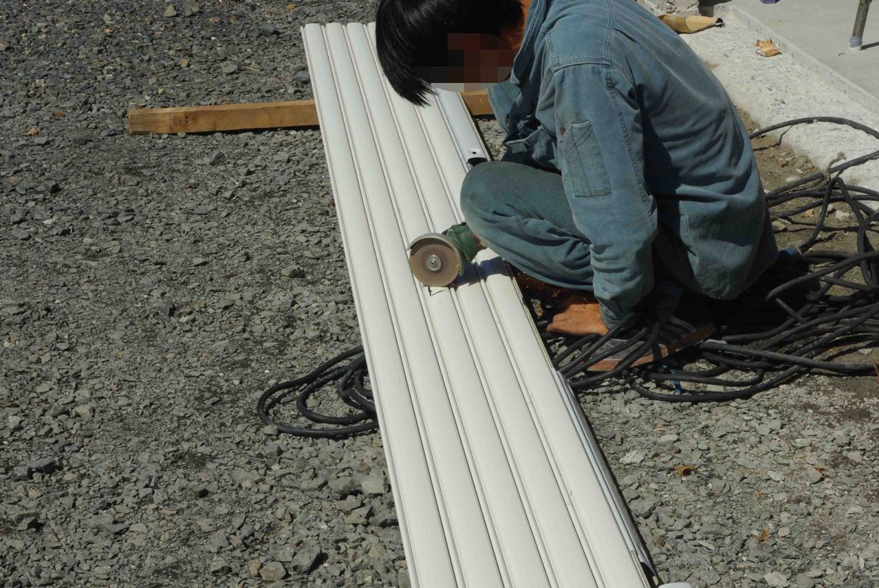 ガイドレールの上端部を、シャッターケースのフレームなどの形に合わせて加工します。