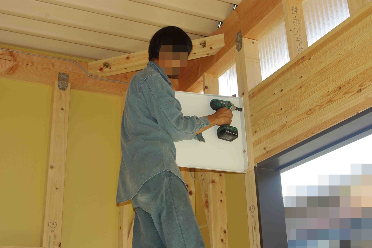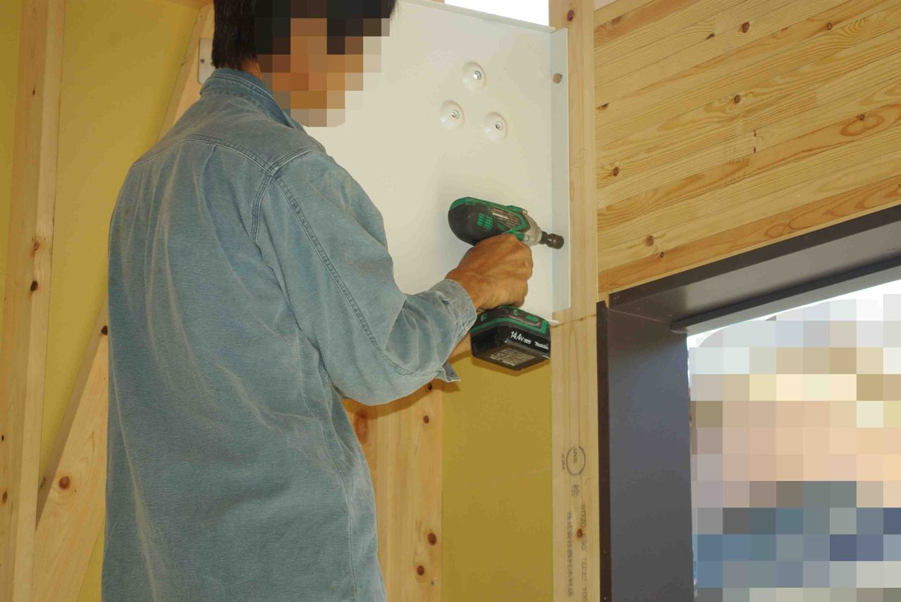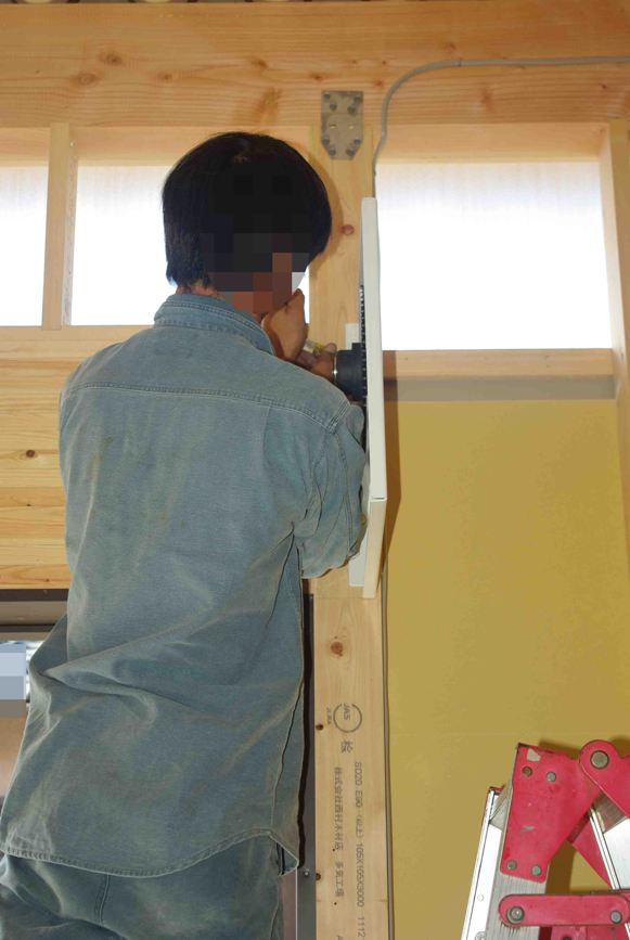 取り付け位置が決まったら、このように途中の部分も木ねじでしっかりと固定します。