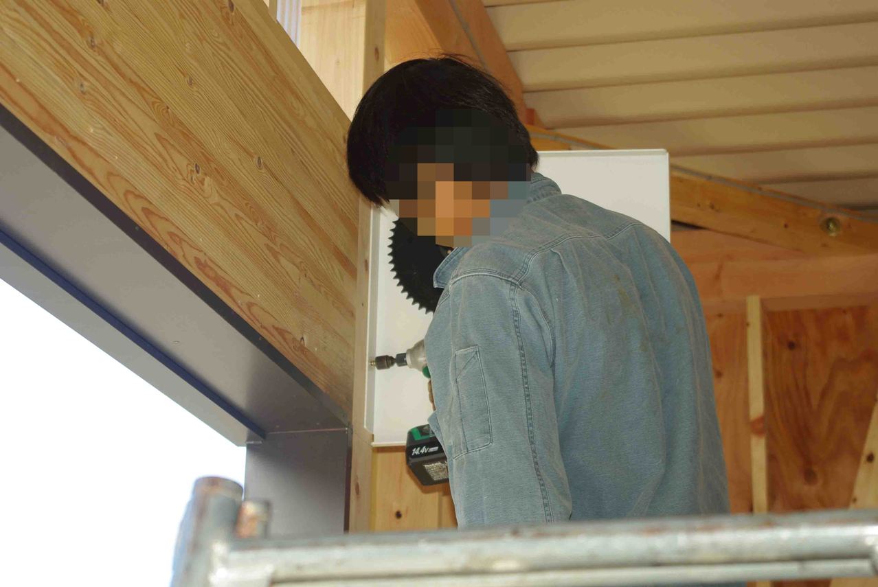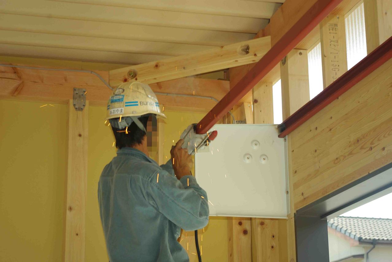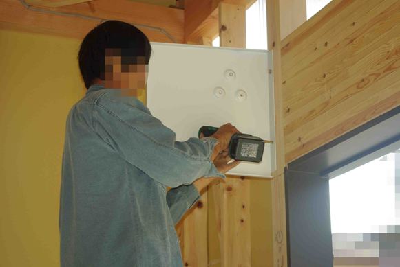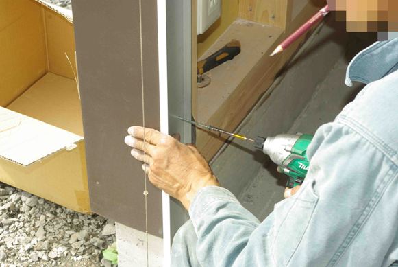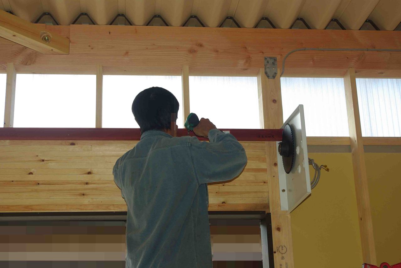 取り付け位置が決まったら、このように途中の部分も木ねじでしっかりと固定します。