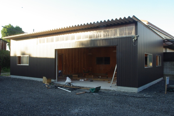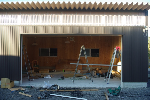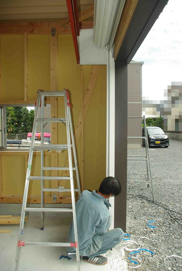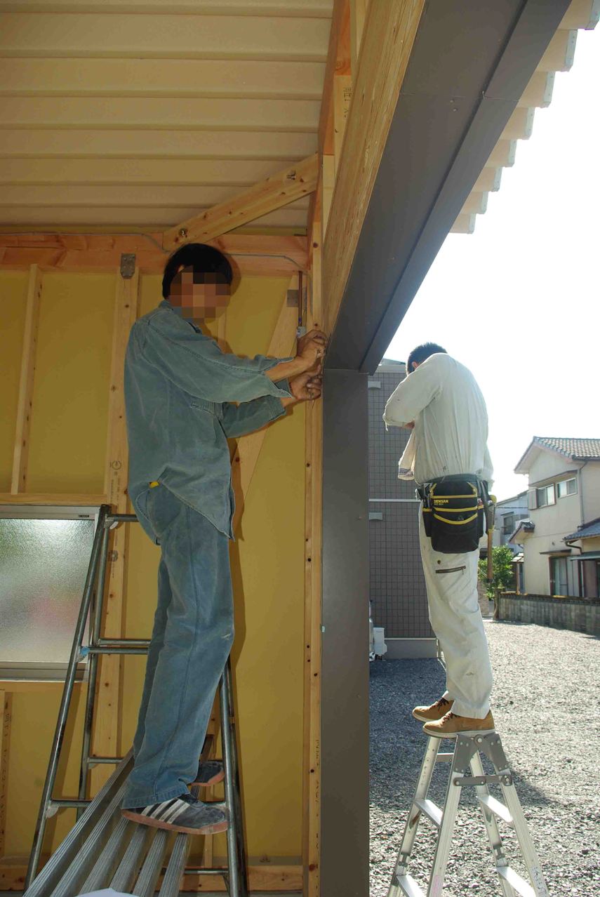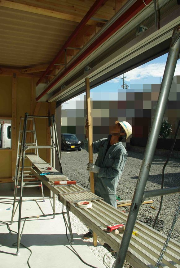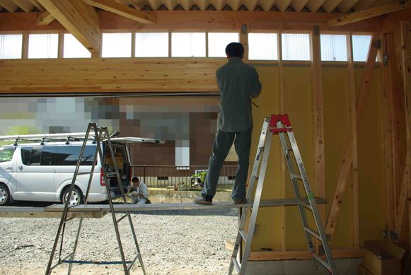外と内とで職人さんがそれぞれのお仕事をしています。
