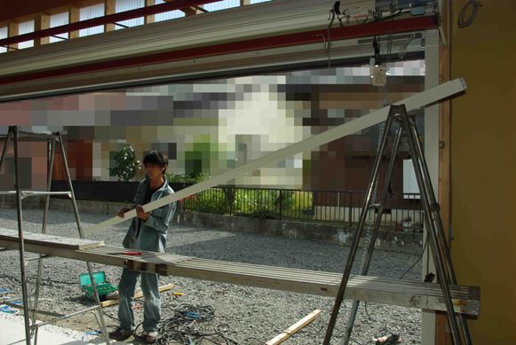 この少し前に文化シャッターのメーカーの方がお見えになっていて、シャッター屋さんのお手伝いしています。
