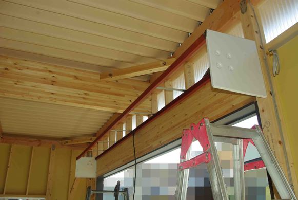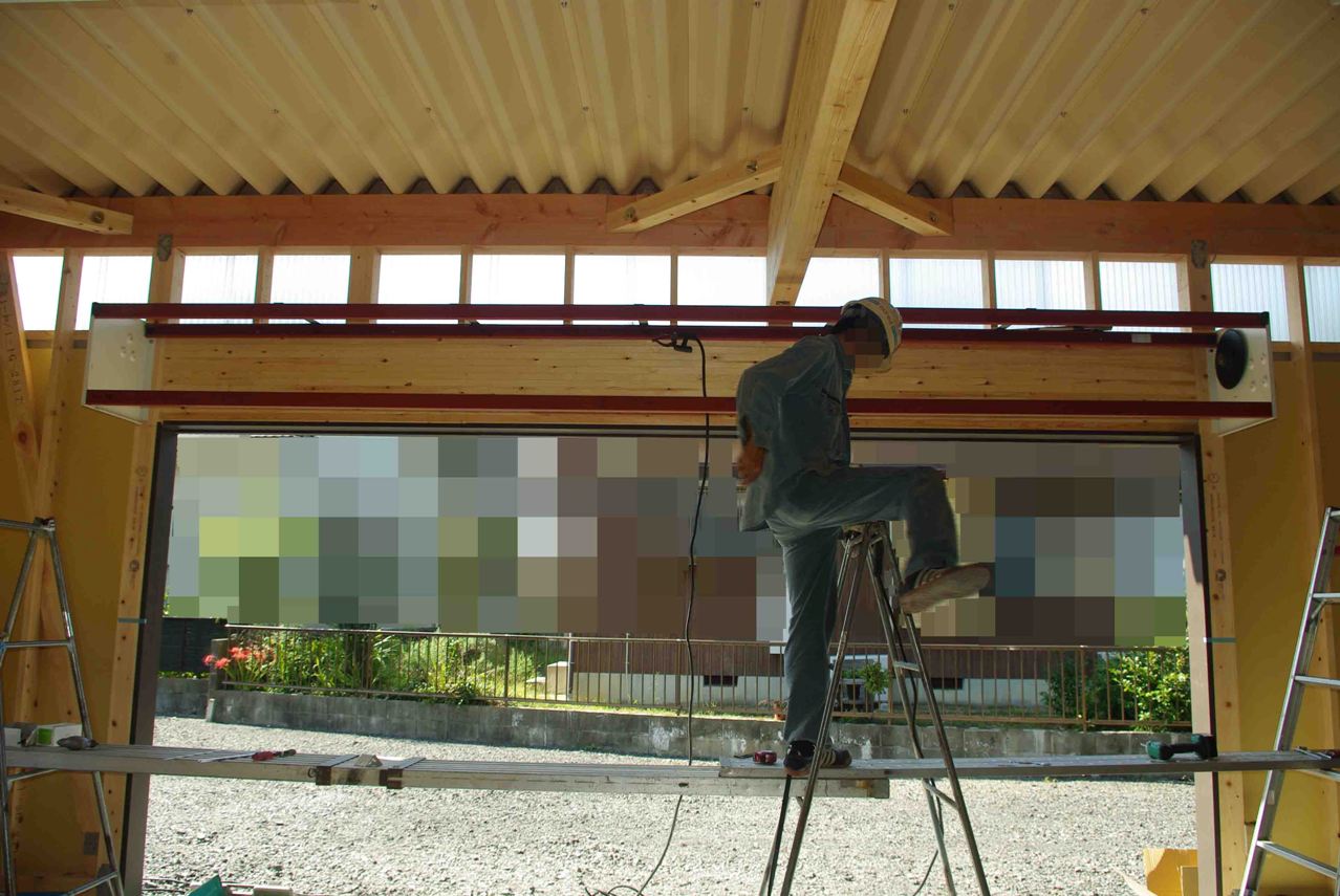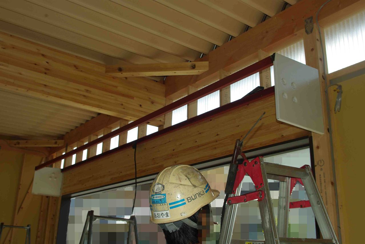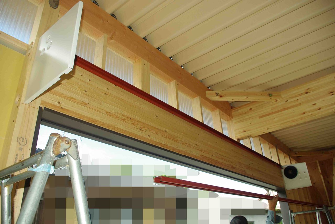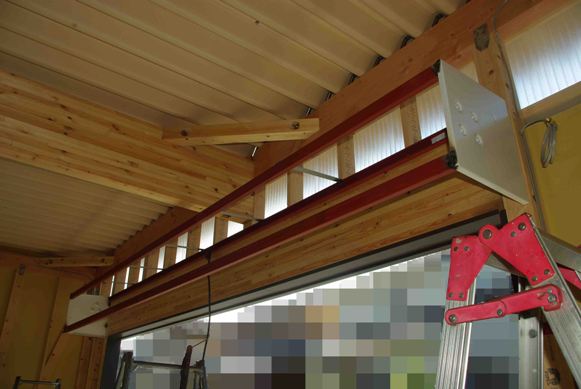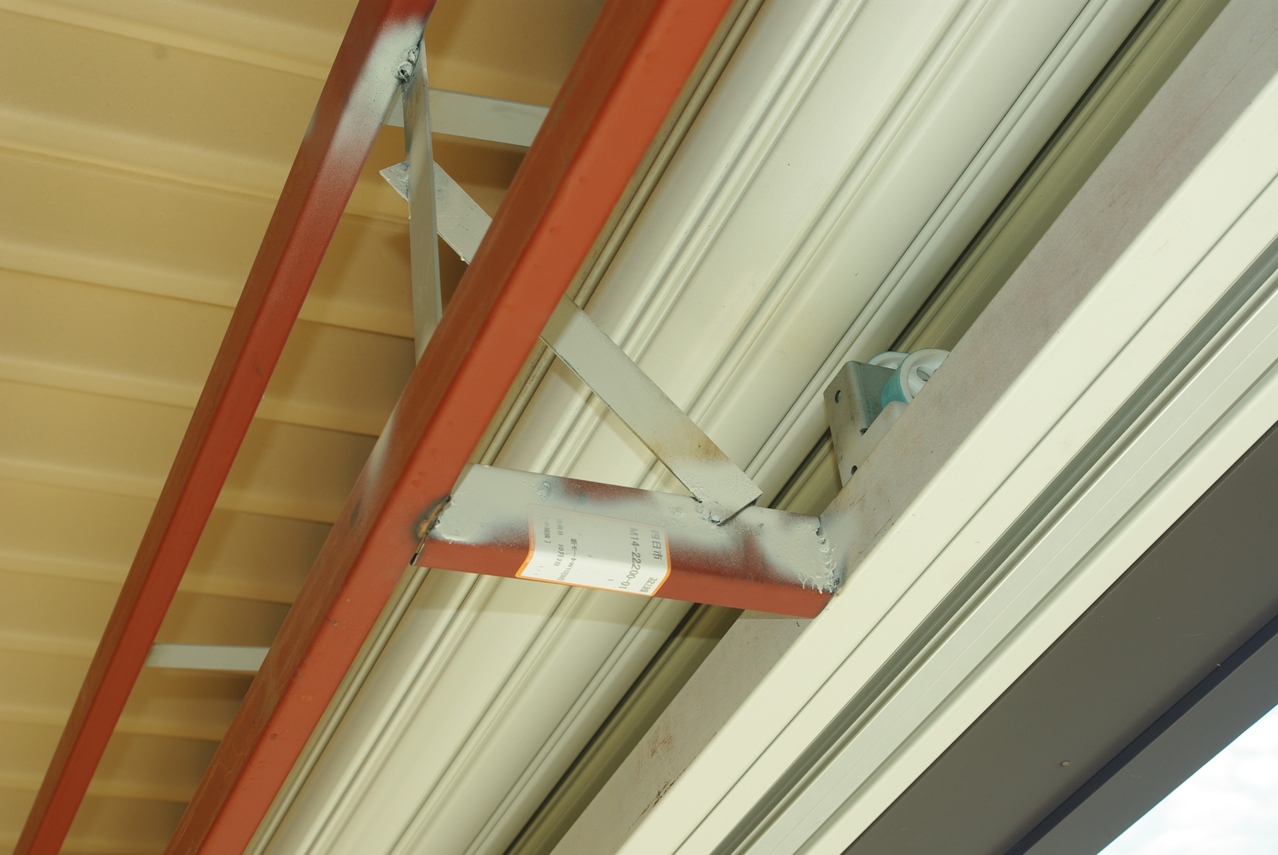2本目の鉄骨まぐさもセットして、開閉機側ブラケットに溶接します。