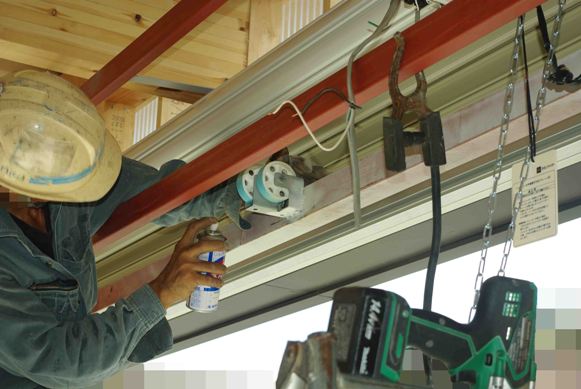 それから溶接箇所にさび止めの塗料をスプレーします。