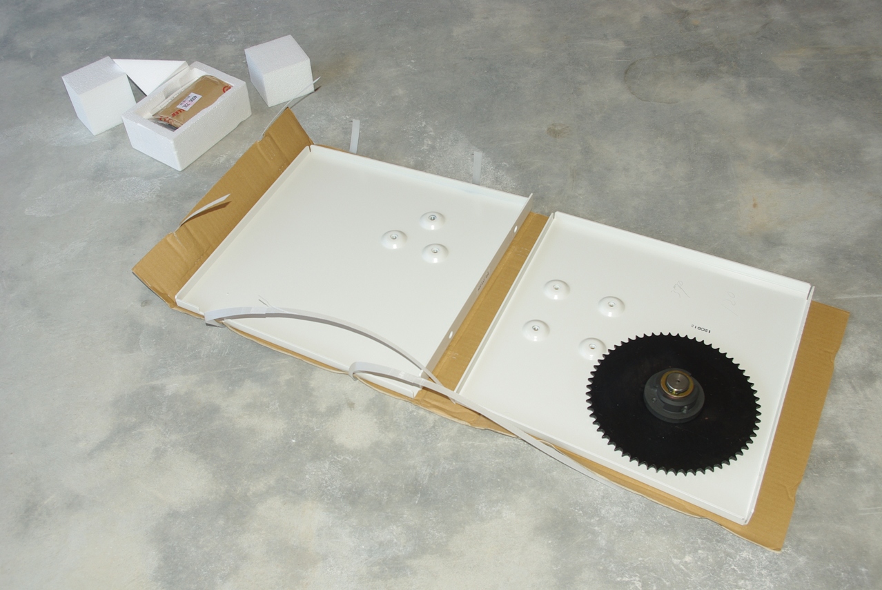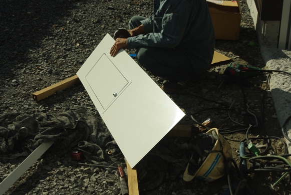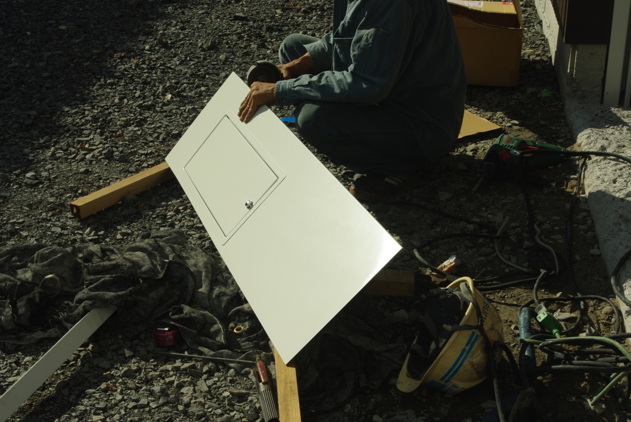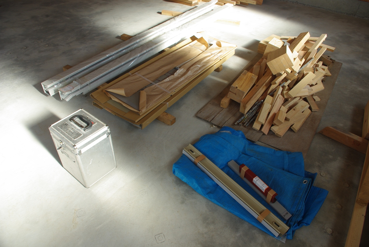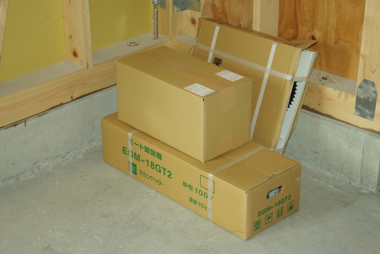 向こう側に梱包してあるのは、シャッターケースのパネルです。