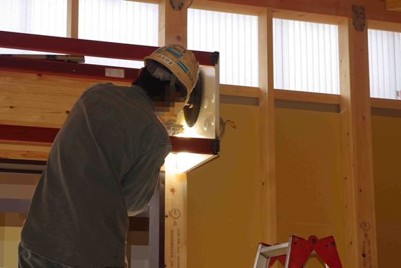 これでこの集成材の特大長押(なげし)の木目が見納めになりました。
