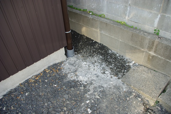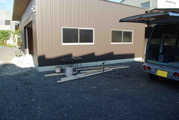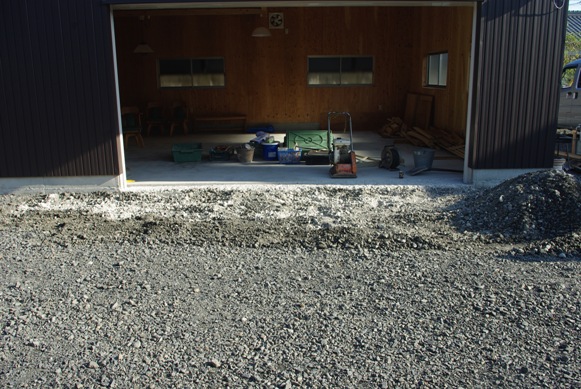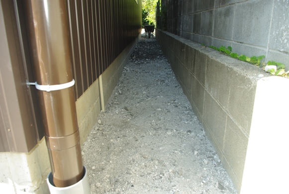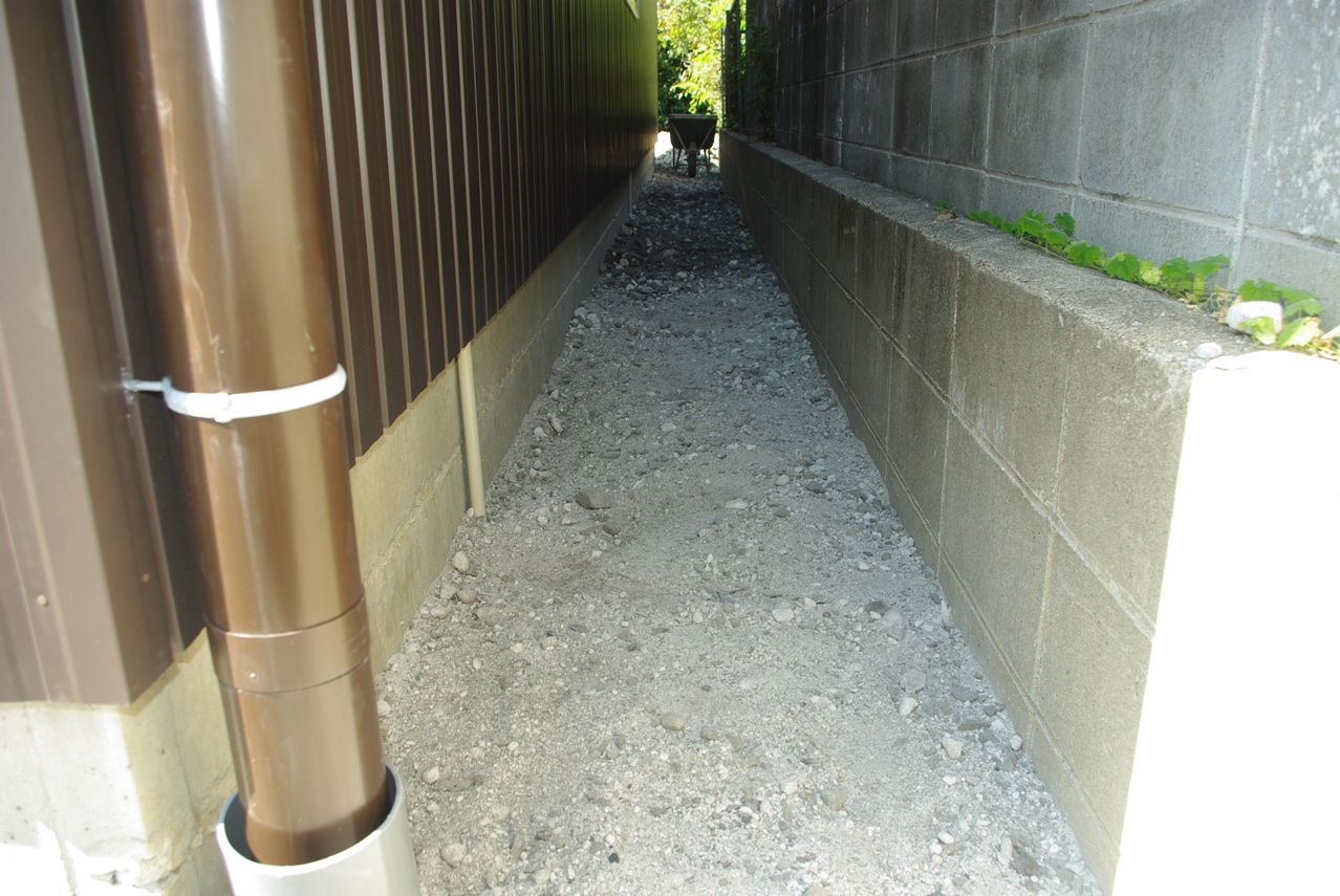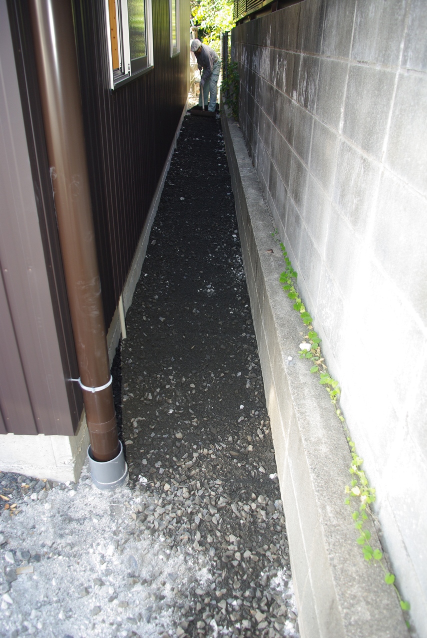 建物の裏の通路にも規定量の砂利が敷かれました。