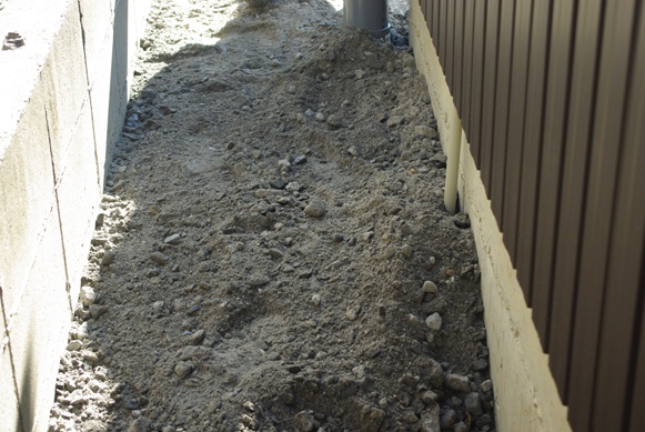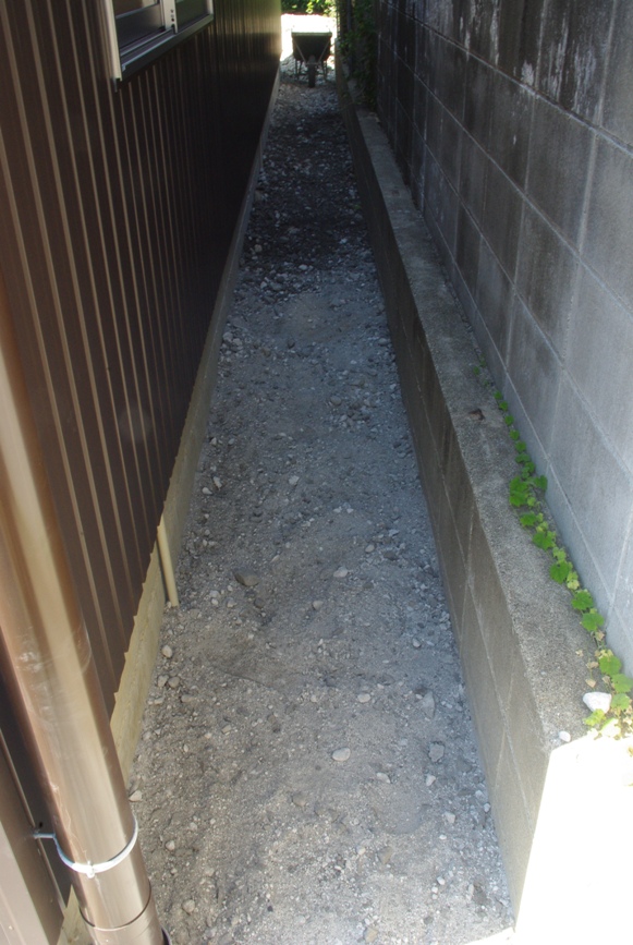またこうして掘り出された砂利は、建物の裏の通路を嵩上げ整地するために用いられます。