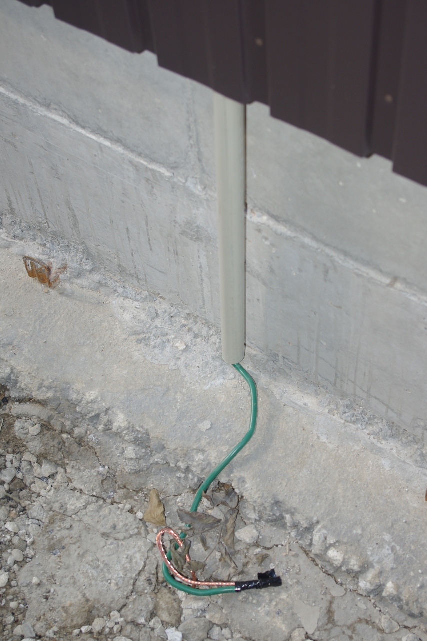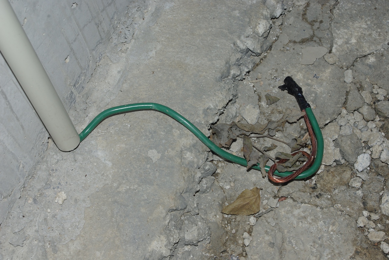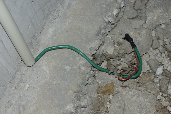 ご覧の通り電気屋さんの作業よって、既にアースの配線はアース棒に接続されて土中に埋められていました。