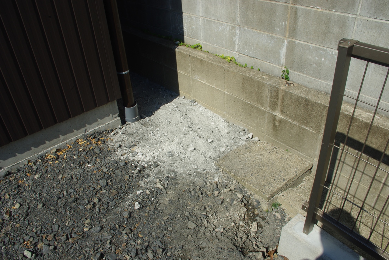 ここも後は小さいコンクリート製外構アプローチを設置するだけとなりました。