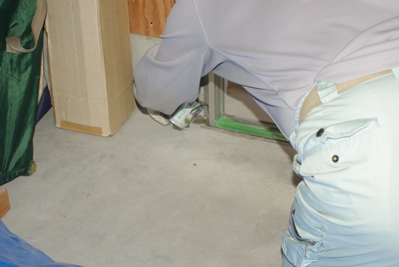 特にアルミサッシ枠の裏側に空洞を作らないよう、入念にコンクリートを詰め込んでいます。