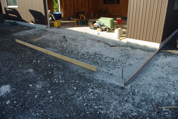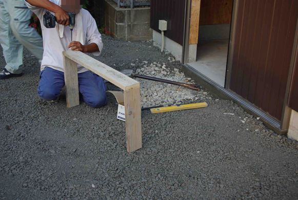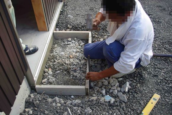 倉庫入り口の簡単な外構アプローチ型枠を製作しています。
