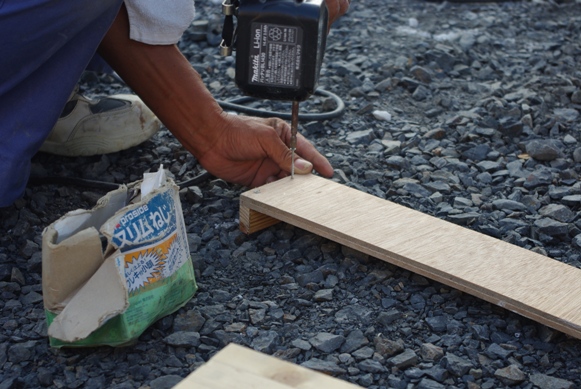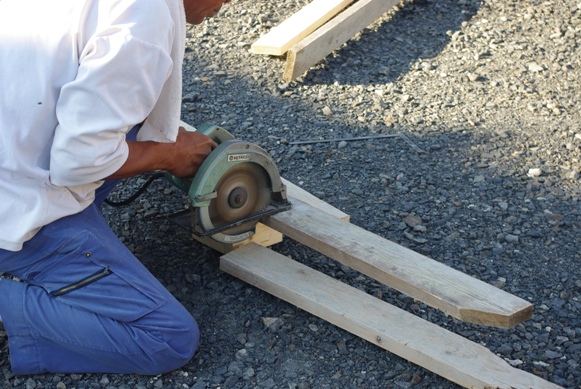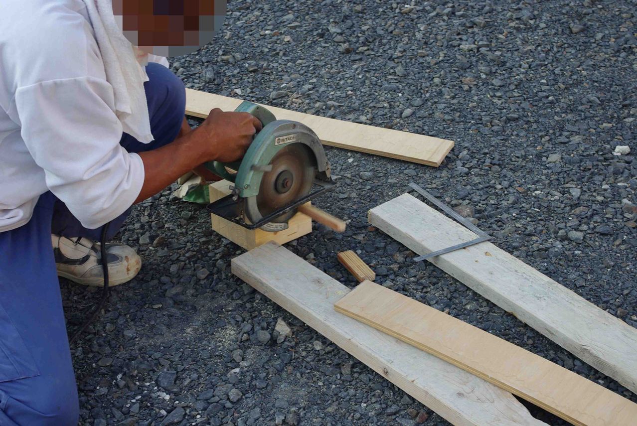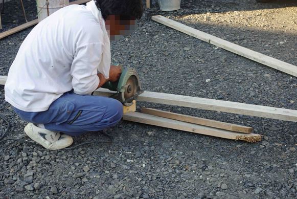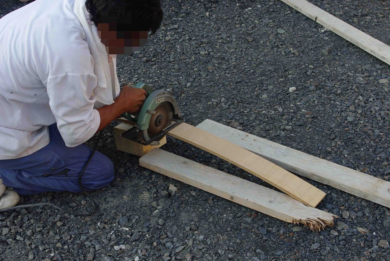 準備していた木の板を、型枠を製作するのに必要な長さにします。