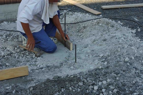 要するに、とろっとした感じの流動性のあるモルタルを、狭い場所になど流し込む方法です。