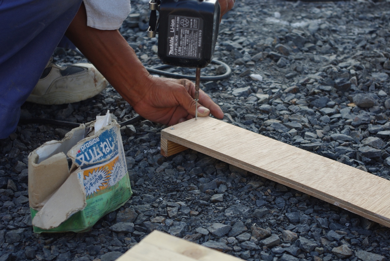 木片の足をしっかりと木ネジでコンパネに固定しました。