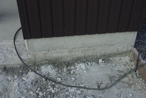 室内電源コンセント設置極用のアース棒を確認する前に、気がついたらこちら側のアースは既に埋められていました。