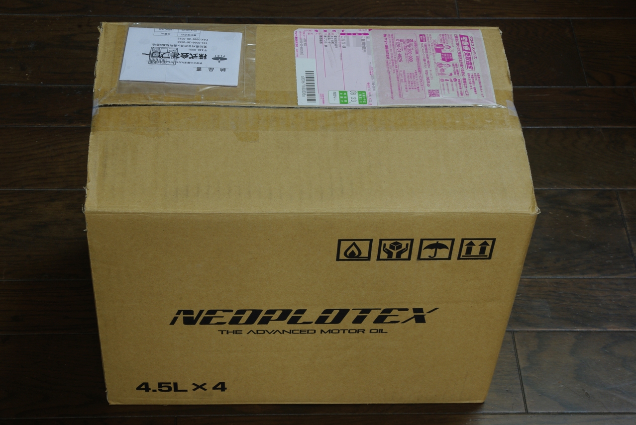 オフ会開催まで時間的に余裕がなかったのですが、青木氏には快く協力していただきまして、この日に協力品としてNEOPLOTEX F エンジンオイルが私の自宅に届けられました。