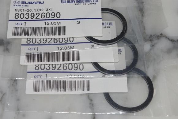 これは、トランスミッションのオイルドレンプラグガスケットの大きい方ですが、この画像のものは以前に購入してあったものです。