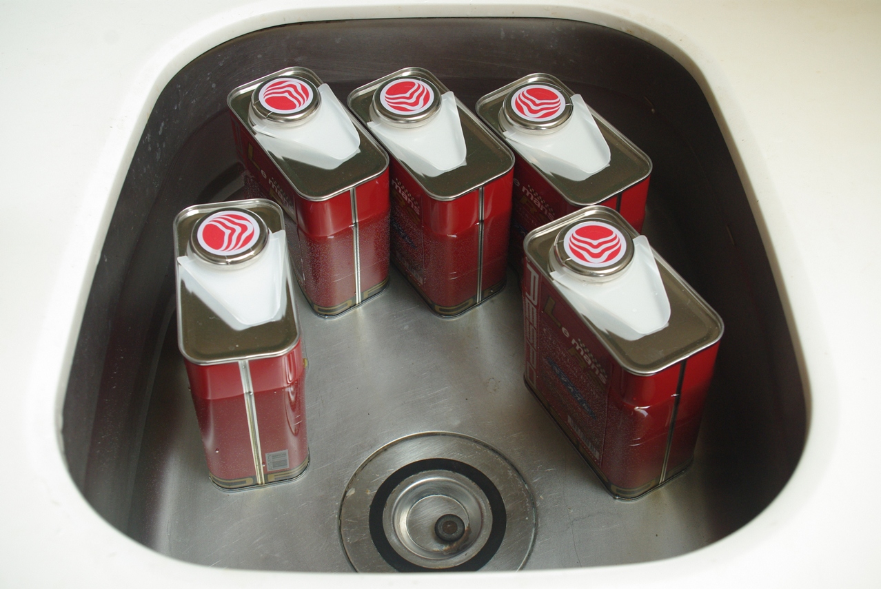 オイル交換作業に先だって、粘度の高いギアオイルを予め湯に浸して温めておくことにしました。