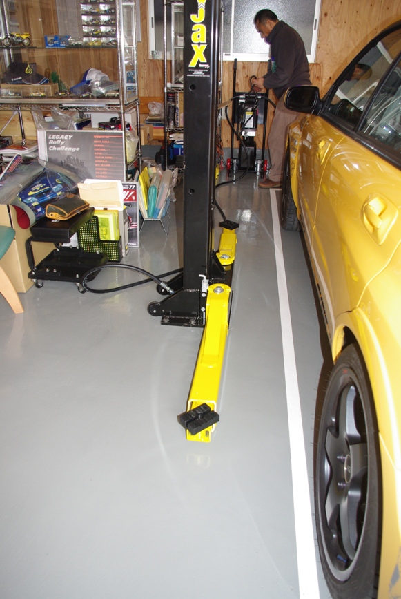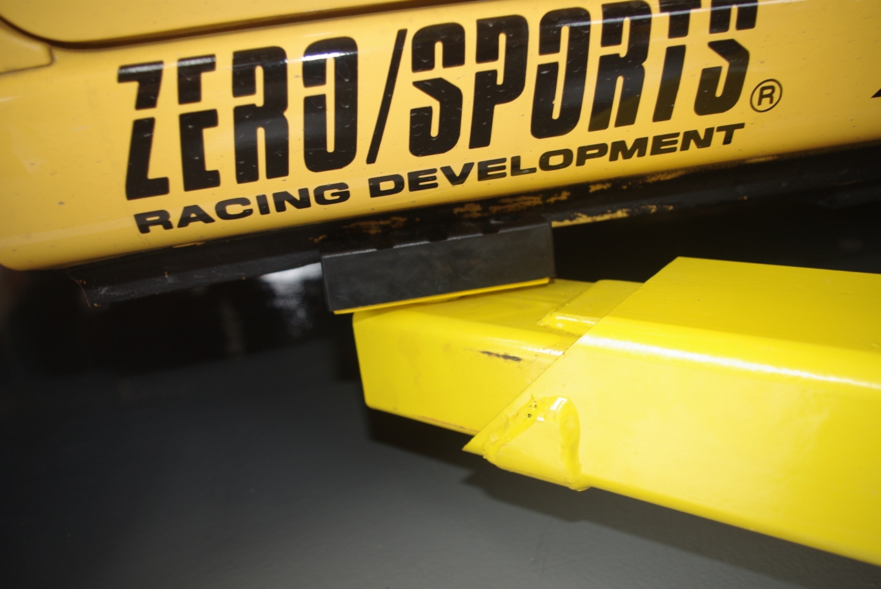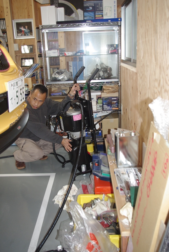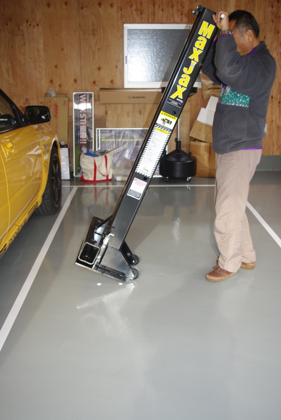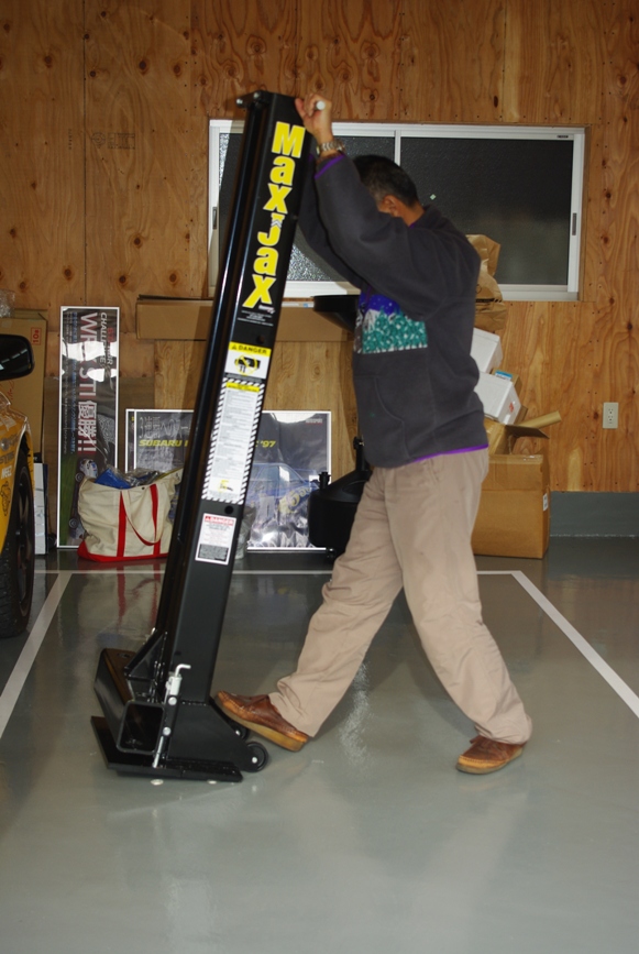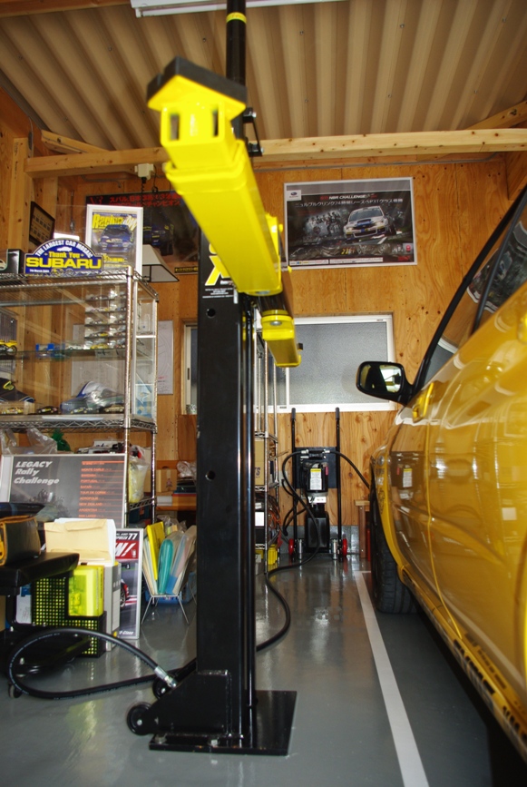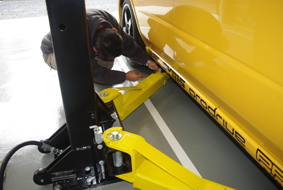 少しづつリフトアップして、ジャッキアップポイントに受け台がしっかりとフィットするよう位置を微調整をします。