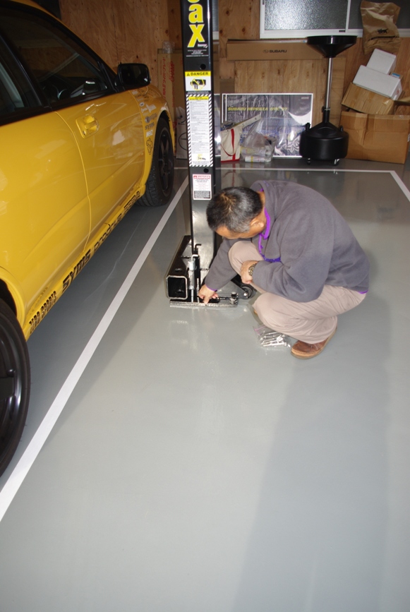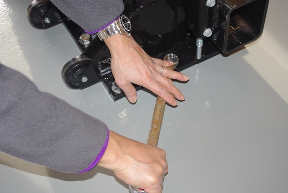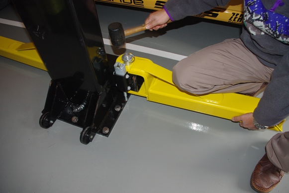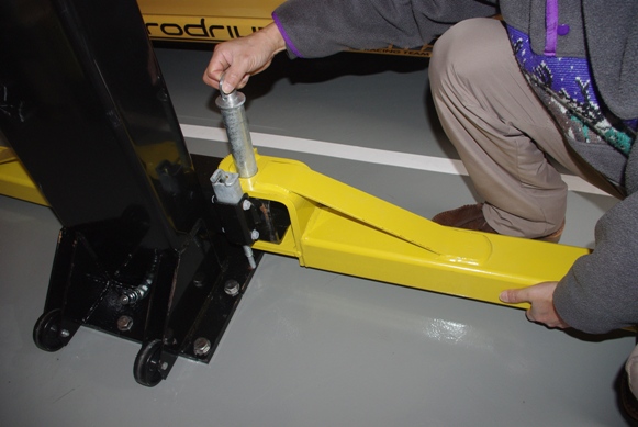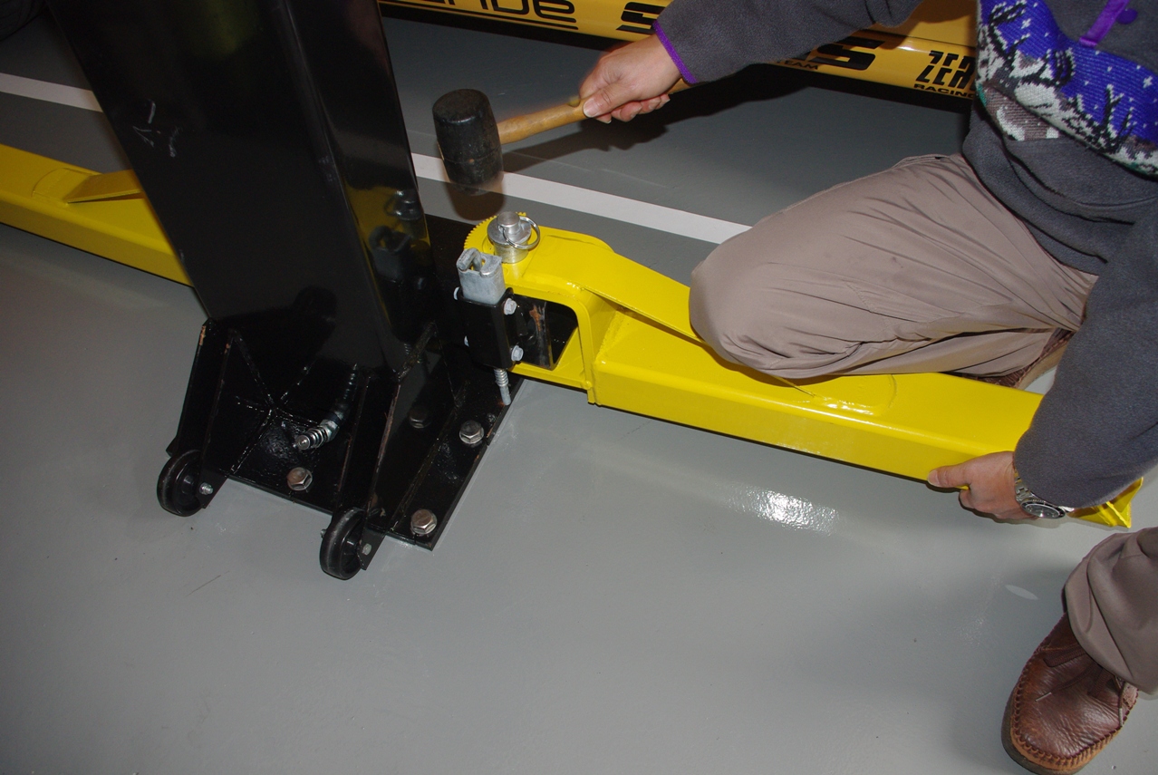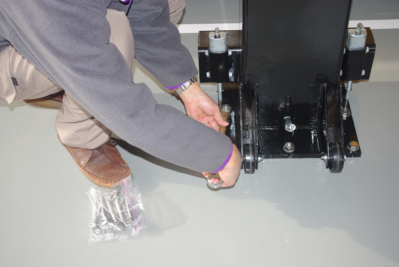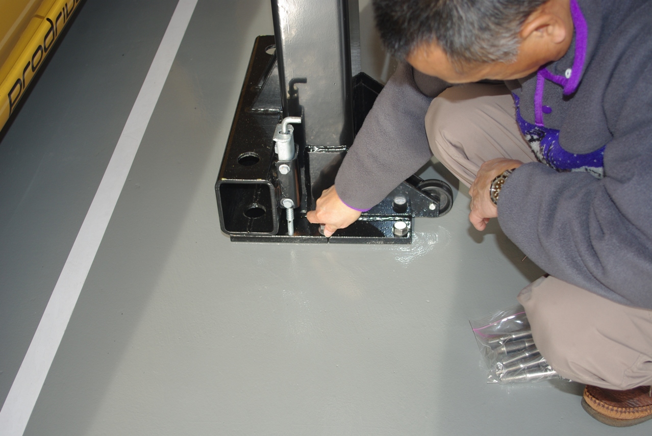 次にMaxjax Portable Liftの支柱台座を床にボルトで固定するためのアンカーの蓋を取り外します。