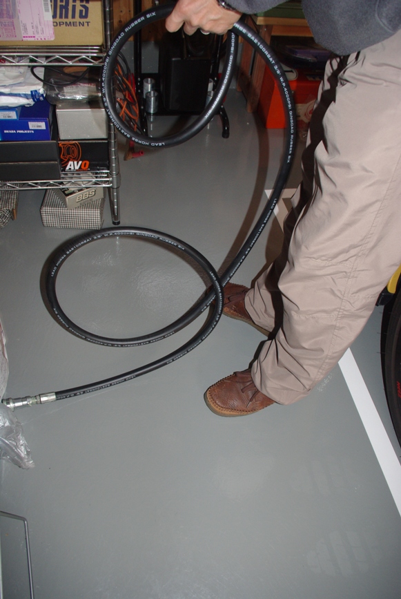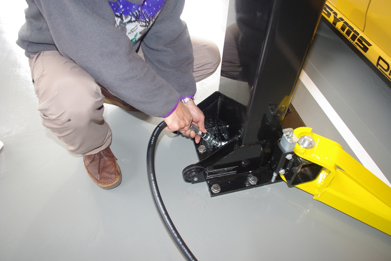 油圧ホースの接続が完了したら、いきなり車両を持ち上げないで、テストを兼ねて一度空荷のままリフトを上げました。