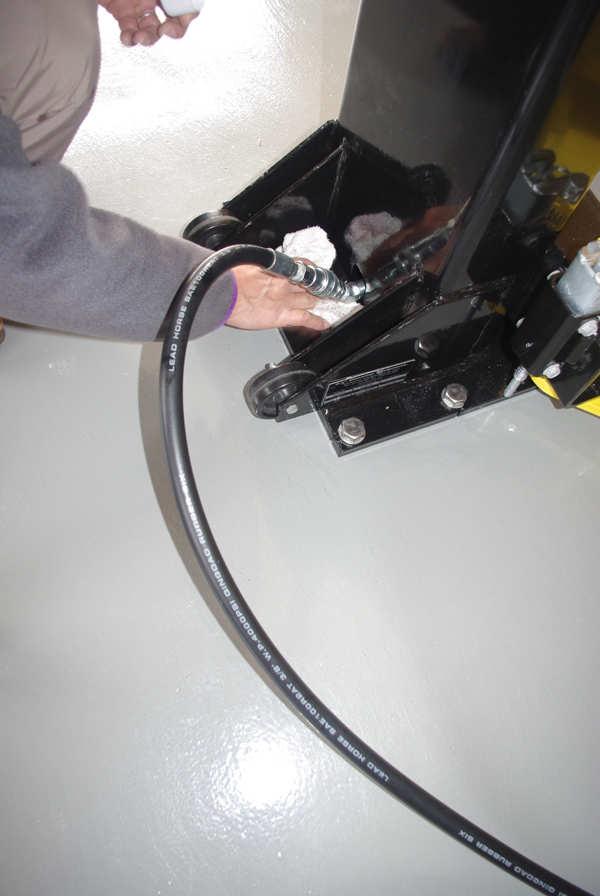 油圧カプラーの接続には、ちょっとしたコツがあるようで、こちら側は殆どオイルを溢さずに繋げました。