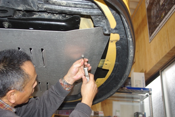 アンダーパネルの中心に近い2箇所のボルトを一番最後に取り外すことで、1人でも容易に支えながら取り外すことが出来ます。
