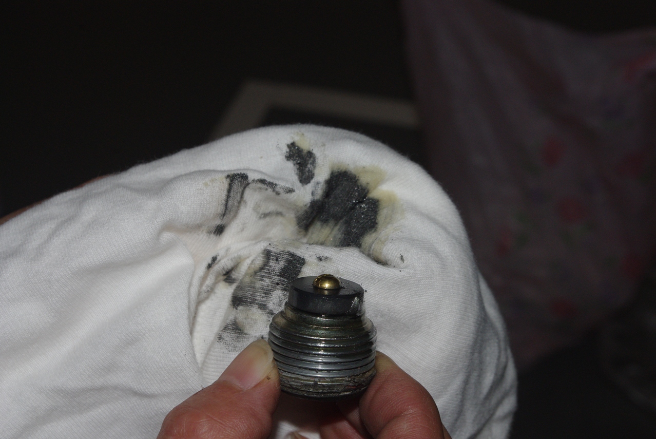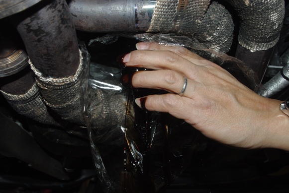 ご覧の通りラップで覆った部分にオイルがベッタリと付着しています。