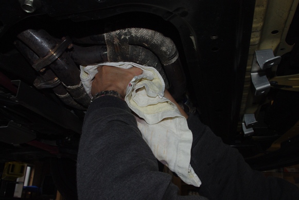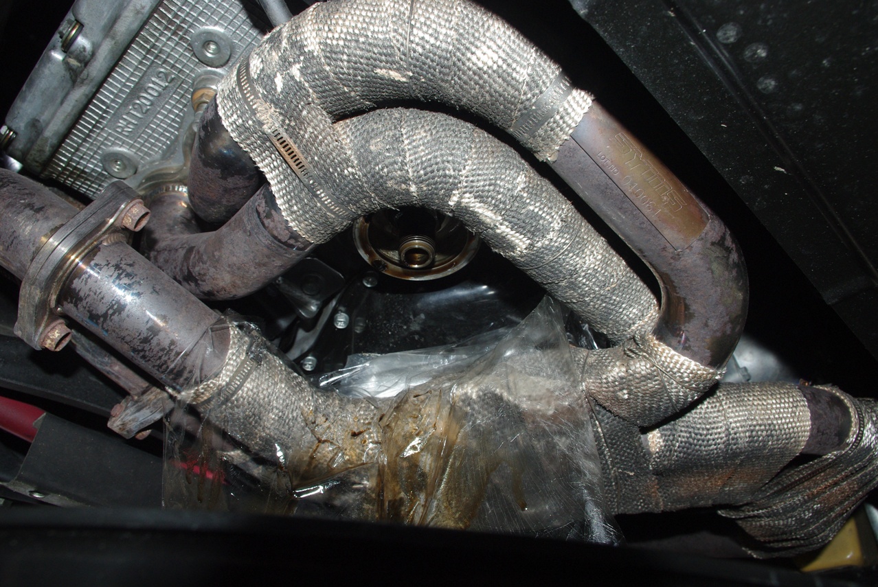 これをやらないとEXマニに巻いてある耐熱バンテージに少しでもオイルが掛かると染みこんで大変です。