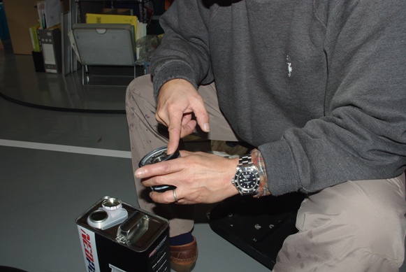 直前まで湯に浸けて温めてあったデフ用オイルを準備します。