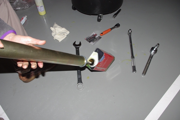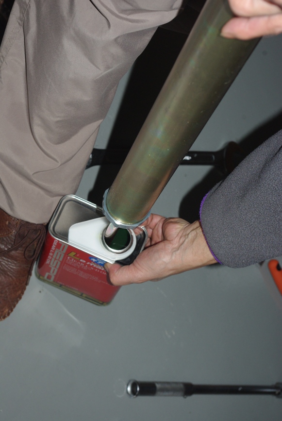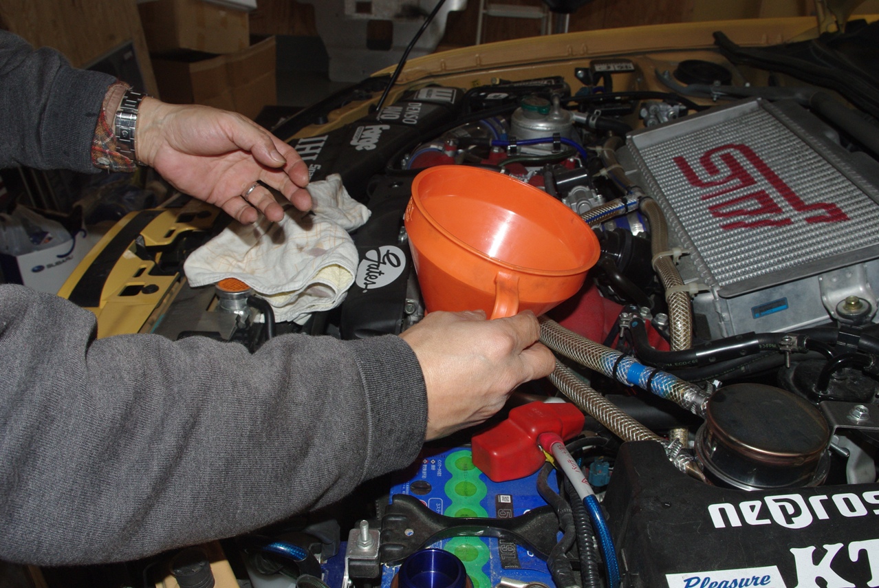 ジョッキなどは使用せずに、オイル缶から直接この漏斗を通して給油します。