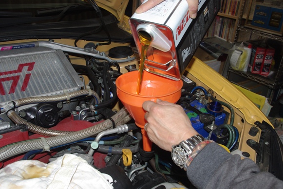この追加でフィラー口からオイルが溢れてきましたので、これでほぼ規定量入りました。