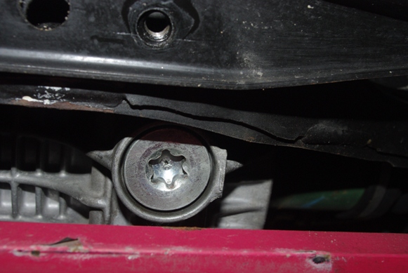 アンダーパネル用ブラケットを取り外すとドレンプラグ(大)が見えます。
