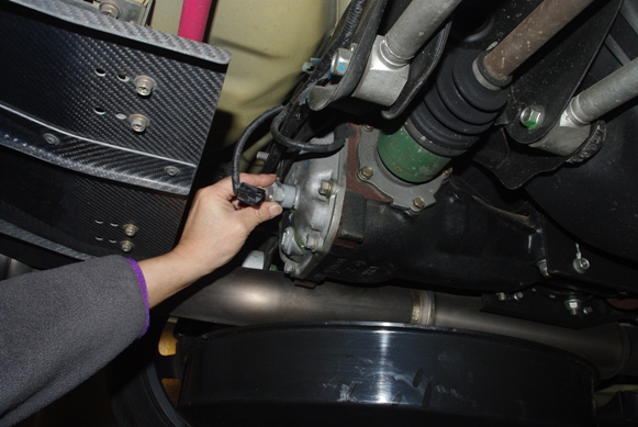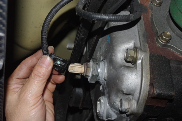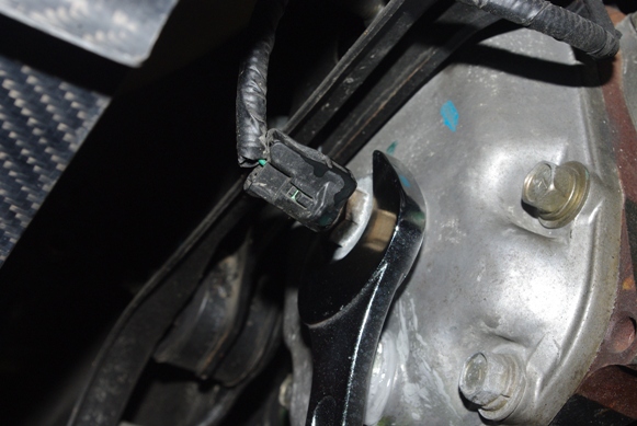 まず最初にフィラープラグの油温センサー(たぶん)の配線カプラーを取り外しました。